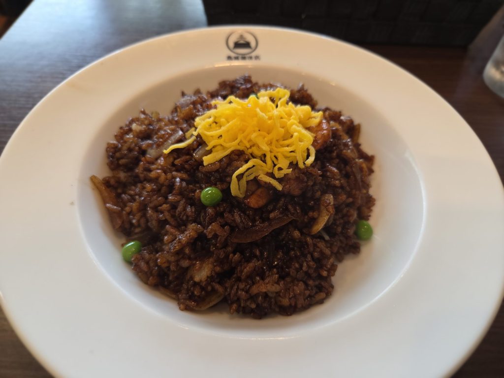 岡山名物であるえびめしとデミかつ丼で迷いましたがえびめし(850円)をいただきました。一見真っ黒でびっくりしましたが、味は全然濃くなくて、美味しかったです。デミグラスソースやウスターソースの味がした気がしましたが自信はありません。でも美味しかったので気になる人は食べてみてください。