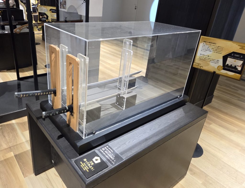 当時使われていた刀や銃を再現したものが飾られており、実際に持ち上げて重さを体験できるようになっていました。想像より重たくて、こんなに重たい武器を戦場で振り回していたなんて、きっとマッチョだったんだろうなと思いました。